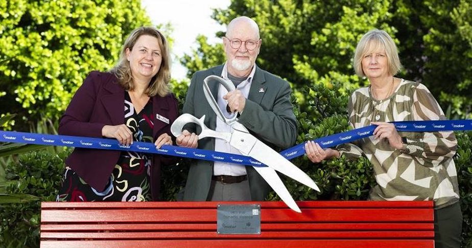 The red benches are part of a Mater-wide project, Addressing Domestic Abuse, was funded through community donations to Mater Foundation and involved DFV education and training to Mater staff and patients to raise organisational awareness.