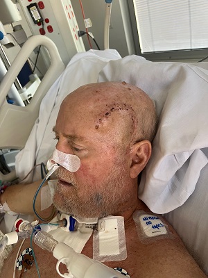 Image left: Paul O'Connor in recovery just days after the marathon surgery.