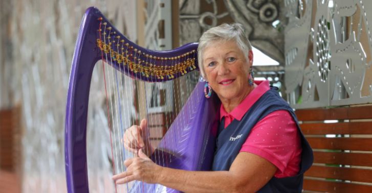 Harpist Narelle plays from the heart for Mater cancer patients